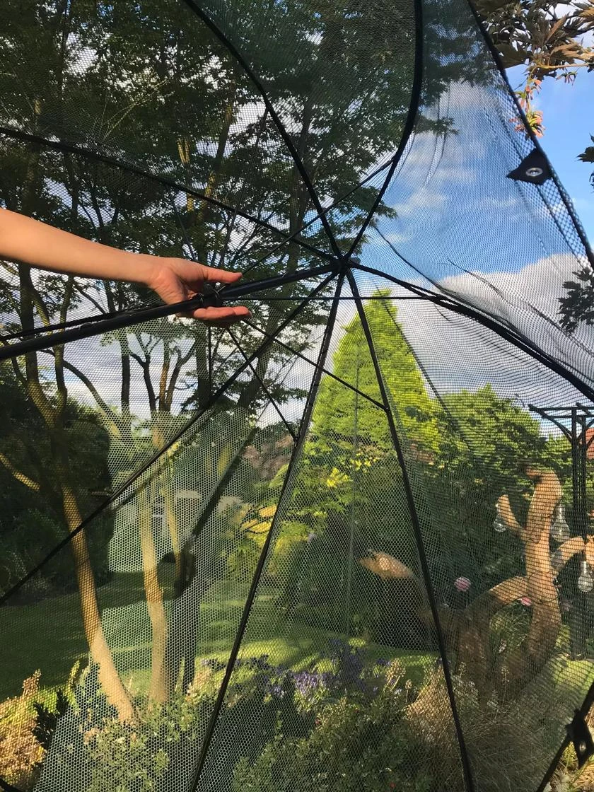 Keep bunnies from nibbling your lettuce, moths from laying eggs on your cabbages, and birds from stealing your berries! Ingenious design pops open and closed just like a rain umbrella, the “handle” pushes into the ground and voila — instant protection for tender young plants. Can also be used to give a little shade from scorching sun.